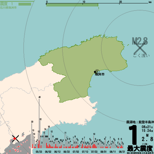 日本の地震の震度情報を、市区町村単位で、地図に描きます。地震は、地盤によって意外な揺れ方をしており、一概に近いほど揺れている訳ではありません。震度3以上の地震はプッシュ通知でお知らせします。津波注意報・津波警報が出ている場合、その旨を文字とともに、海を赤色に描画して警告します。過去の地震も閲覧できます。原子力発電所との位置関係を把握可能。