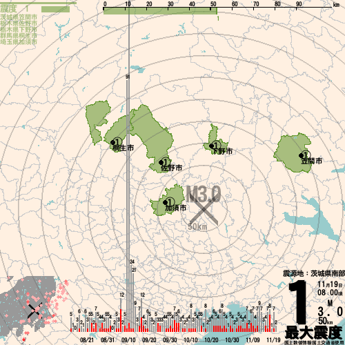 日本の地震の震度情報を、市区町村単位で、地図に描きます。地震は、地盤によって意外な揺れ方をしており、一概に近いほど揺れている訳ではありません。震度3以上の地震はプッシュ通知でお知らせします。津波注意報・津波警報が出ている場合、その旨を文字とともに、海を赤色に描画して警告します。過去の地震も閲覧できます。原子力発電所との位置関係を把握可能。