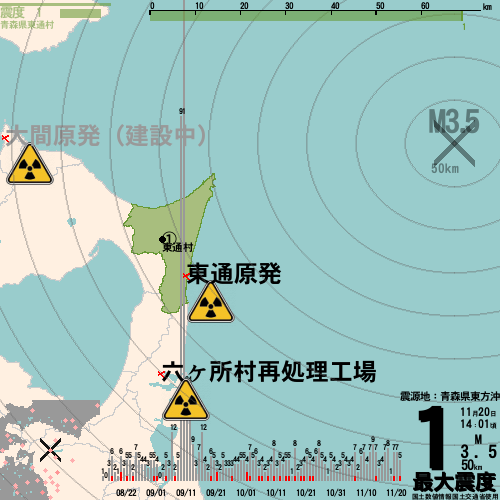 日本の地震の震度情報を、市区町村単位で、地図に描きます。地震は、地盤によって意外な揺れ方をしており、一概に近いほど揺れている訳ではありません。震度3以上の地震はプッシュ通知でお知らせします。津波注意報・津波警報が出ている場合、その旨を文字とともに、海を赤色に描画して警告します。過去の地震も閲覧できます。原子力発電所との位置関係を把握可能。