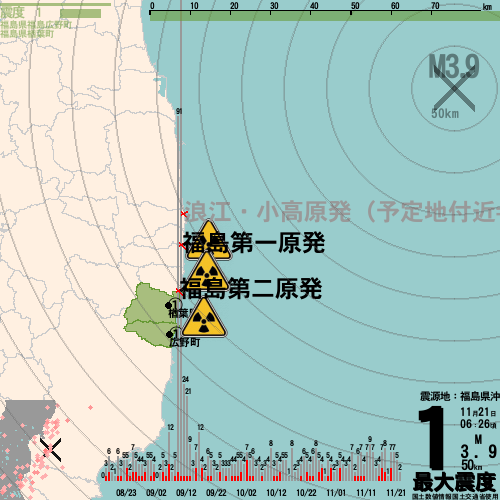 日本の地震の震度情報を、市区町村単位で、地図に描きます。地震は、地盤によって意外な揺れ方をしており、一概に近いほど揺れている訳ではありません。震度3以上の地震はプッシュ通知でお知らせします。津波注意報・津波警報が出ている場合、その旨を文字とともに、海を赤色に描画して警告します。過去の地震も閲覧できます。原子力発電所との位置関係を把握可能。