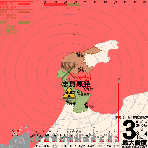 日本の地震の震度情報を、市区町村単位で、地図に描きます。地震は、地盤によって意外な揺れ方をしており、一概に近いほど揺れている訳ではありません。震度3以上の地震はプッシュ通知でお知らせします。津波注意報・津波警報が出ている場合、その旨を文字とともに、海を赤色に描画して警告します。過去の地震も閲覧できます。原子力発電所との位置関係を把握可能。