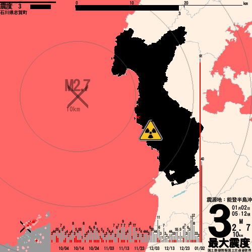 日本の地震の震度情報を、市区町村単位で、地図に描きます。地震は、地盤によって意外な揺れ方をしており、一概に近いほど揺れている訳ではありません。震度3以上の地震はプッシュ通知でお知らせします。津波注意報・津波警報が出ている場合、その旨を文字とともに、海を赤色に描画して警告します。過去の地震も閲覧できます。原子力発電所との位置関係を把握可能。