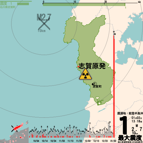 日本の地震の震度情報を、市区町村単位で、地図に描きます。地震は、地盤によって意外な揺れ方をしており、一概に近いほど揺れている訳ではありません。震度3以上の地震はプッシュ通知でお知らせします。津波注意報・津波警報が出ている場合、その旨を文字とともに、海を赤色に描画して警告します。過去の地震も閲覧できます。原子力発電所との位置関係を把握可能。