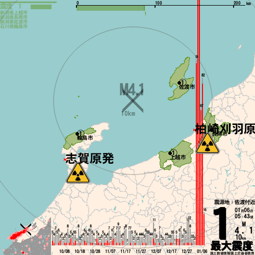 日本の地震の震度情報を、市区町村単位で、地図に描きます。地震は、地盤によって意外な揺れ方をしており、一概に近いほど揺れている訳ではありません。震度3以上の地震はプッシュ通知でお知らせします。津波注意報・津波警報が出ている場合、その旨を文字とともに、海を赤色に描画して警告します。過去の地震も閲覧できます。原子力発電所との位置関係を把握可能。