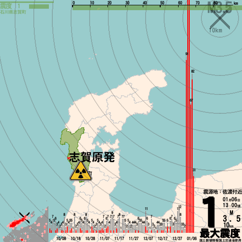 日本の地震の震度情報を、市区町村単位で、地図に描きます。地震は、地盤によって意外な揺れ方をしており、一概に近いほど揺れている訳ではありません。震度3以上の地震はプッシュ通知でお知らせします。津波注意報・津波警報が出ている場合、その旨を文字とともに、海を赤色に描画して警告します。過去の地震も閲覧できます。原子力発電所との位置関係を把握可能。