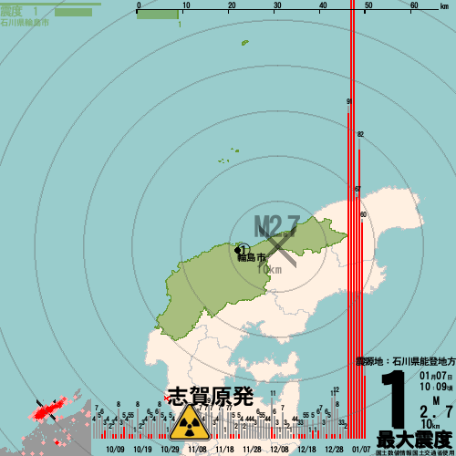 日本の地震の震度情報を、市区町村単位で、地図に描きます。地震は、地盤によって意外な揺れ方をしており、一概に近いほど揺れている訳ではありません。震度3以上の地震はプッシュ通知でお知らせします。津波注意報・津波警報が出ている場合、その旨を文字とともに、海を赤色に描画して警告します。過去の地震も閲覧できます。原子力発電所との位置関係を把握可能。