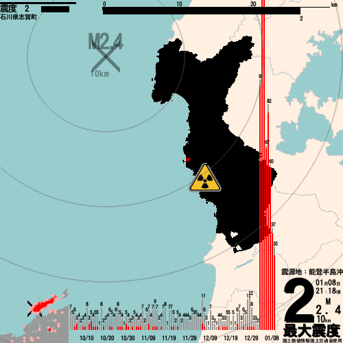 日本の地震の震度情報を、市区町村単位で、地図に描きます。地震は、地盤によって意外な揺れ方をしており、一概に近いほど揺れている訳ではありません。震度3以上の地震はプッシュ通知でお知らせします。津波注意報・津波警報が出ている場合、その旨を文字とともに、海を赤色に描画して警告します。過去の地震も閲覧できます。原子力発電所との位置関係を把握可能。