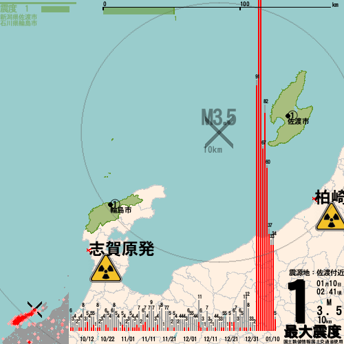 日本の地震の震度情報を、市区町村単位で、地図に描きます。地震は、地盤によって意外な揺れ方をしており、一概に近いほど揺れている訳ではありません。震度3以上の地震はプッシュ通知でお知らせします。津波注意報・津波警報が出ている場合、その旨を文字とともに、海を赤色に描画して警告します。過去の地震も閲覧できます。原子力発電所との位置関係を把握可能。