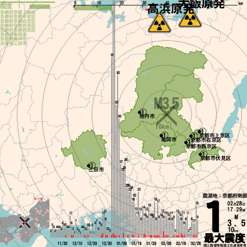 日本の地震の震度情報を、市区町村単位で、地図に描きます。地震は、地盤によって意外な揺れ方をしており、一概に近いほど揺れている訳ではありません。震度3以上の地震はプッシュ通知でお知らせします。津波注意報・津波警報が出ている場合、その旨を文字とともに、海を赤色に描画して警告します。過去の地震も閲覧できます。原子力発電所との位置関係を把握可能。