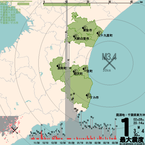 ◆気象庁の地震情報を引用加工して、独自の地図を生成し、表示しています。