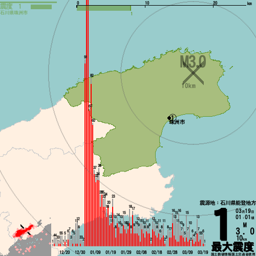 日本の地震の震度情報を、市区町村単位で、地図に描きます。地震は、地盤によって意外な揺れ方をしており、一概に近いほど揺れている訳ではありません。震度3以上の地震はプッシュ通知でお知らせします。津波注意報・津波警報が出ている場合、その旨を文字とともに、海を赤色に描画して警告します。過去の地震も閲覧できます。原子力発電所との位置関係を把握可能。