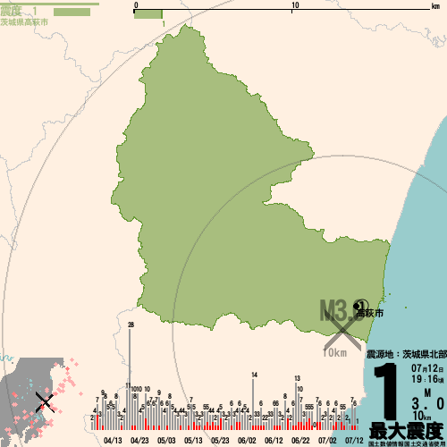 日本の地震の震度情報を、市区町村単位で、地図に描きます。地震は、地盤によって意外な揺れ方をしており、一概に近いほど揺れている訳ではありません。震度3以上の地震はプッシュ通知でお知らせします。津波注意報・津波警報が出ている場合、その旨を文字とともに、海を赤色に描画して警告します。過去の地震も閲覧できます。原子力発電所との位置関係を把握可能。