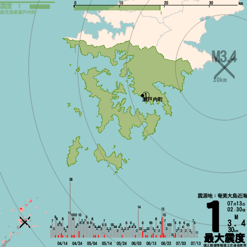 日本の地震の震度情報を、市区町村単位で、地図に描きます。地震は、地盤によって意外な揺れ方をしており、一概に近いほど揺れている訳ではありません。震度3以上の地震はプッシュ通知でお知らせします。津波注意報・津波警報が出ている場合、その旨を文字とともに、海を赤色に描画して警告します。過去の地震も閲覧できます。原子力発電所との位置関係を把握可能。