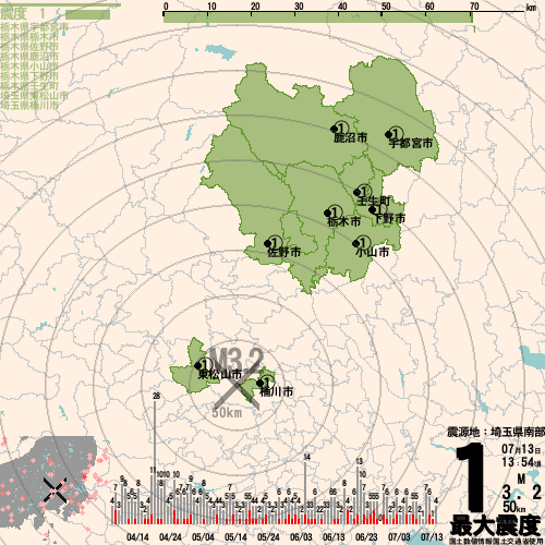日本の地震の震度情報を、市区町村単位で、地図に描きます。地震は、地盤によって意外な揺れ方をしており、一概に近いほど揺れている訳ではありません。震度3以上の地震はプッシュ通知でお知らせします。津波注意報・津波警報が出ている場合、その旨を文字とともに、海を赤色に描画して警告します。過去の地震も閲覧できます。原子力発電所との位置関係を把握可能。
