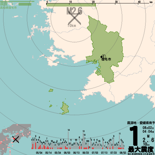 愛媛県南予_最大震度1_M2.6_10km