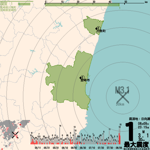 日本の地震の震度情報を、市区町村単位で、地図に描きます。地震は、地盤によって意外な揺れ方をしており、一概に近いほど揺れている訳ではありません。震度3以上の地震はプッシュ通知でお知らせします。津波注意報・津波警報が出ている場合、その旨を文字とともに、海を赤色に描画して警告します。過去の地震も閲覧できます。原子力発電所との位置関係を把握可能。