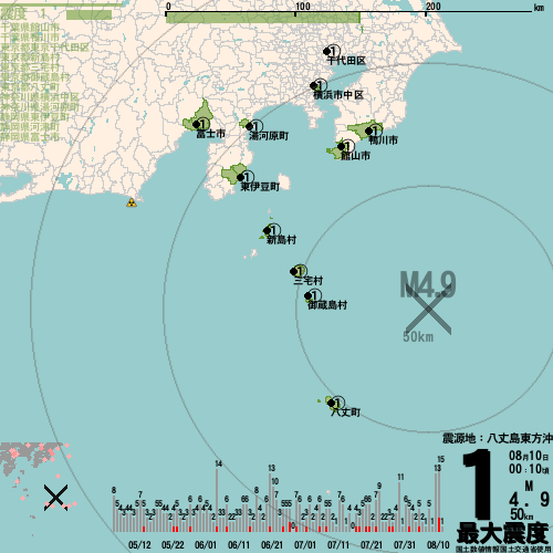 日本の地震の震度情報を、市区町村単位で、地図に描きます。地震は、地盤によって意外な揺れ方をしており、一概に近いほど揺れている訳ではありません。震度3以上の地震はプッシュ通知でお知らせします。津波注意報・津波警報が出ている場合、その旨を文字とともに、海を赤色に描画して警告します。過去の地震も閲覧できます。原子力発電所との位置関係を把握可能。