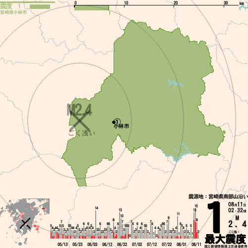宮崎県南部山沿い_最大震度1_M2.4_約10km未満