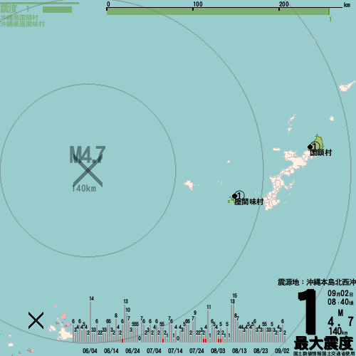 沖縄本島北西沖_最大震度1_M4.7_140km