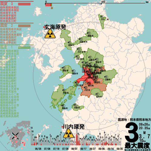 日本の地震の震度情報を、市区町村単位で、地図に描きます。地震は、地盤によって意外な揺れ方をしており、一概に近いほど揺れている訳ではありません。震度3以上の地震はプッシュ通知でお知らせします。津波注意報・津波警報が出ている場合、その旨を文字とともに、海を赤色に描画して警告します。過去の地震も閲覧できます。原子力発電所との位置関係を把握可能。