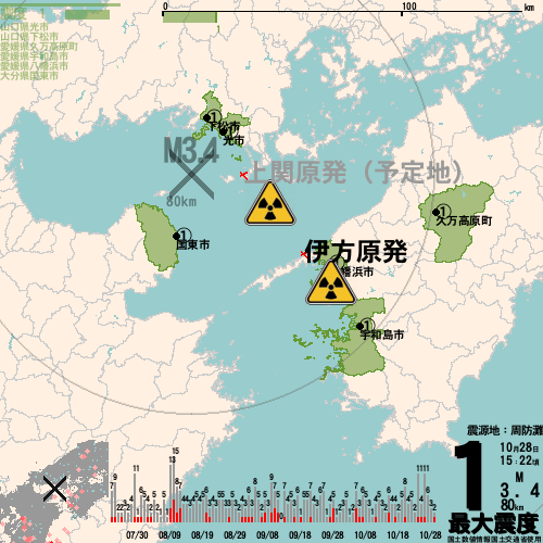 日本の地震の震度情報を、市区町村単位で、地図に描きます。地震は、地盤によって意外な揺れ方をしており、一概に近いほど揺れている訳ではありません。震度3以上の地震はプッシュ通知でお知らせします。津波注意報・津波警報が出ている場合、その旨を文字とともに、海を赤色に描画して警告します。過去の地震も閲覧できます。原子力発電所との位置関係を把握可能。