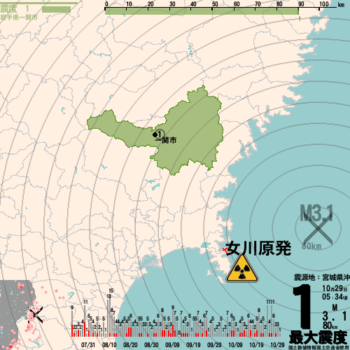 日本の地震の震度情報を、市区町村単位で、地図に描きます。地震は、地盤によって意外な揺れ方をしており、一概に近いほど揺れている訳ではありません。震度3以上の地震はプッシュ通知でお知らせします。津波注意報・津波警報が出ている場合、その旨を文字とともに、海を赤色に描画して警告します。過去の地震も閲覧できます。原子力発電所との位置関係を把握可能。