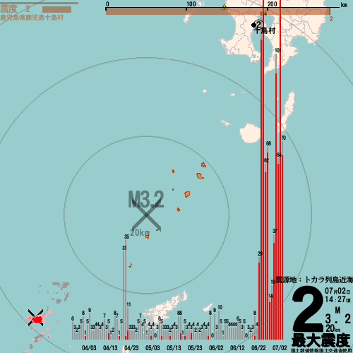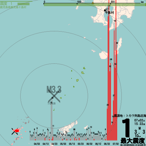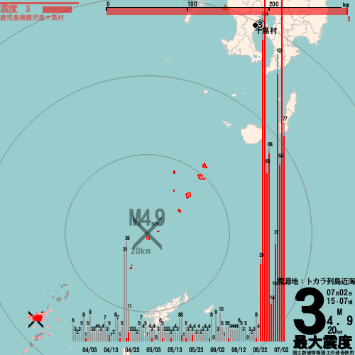 日本の地震の震度情報を、市区町村単位で、地図に描きます。地震は、地盤によって意外な揺れ方をしており、一概に近いほど揺れている訳ではありません。震度3以上の地震はプッシュ通知でお知らせします。津波注意報・津波警報が出ている場合、その旨を文字とともに、海を赤色に描画して警告します。過去の地震も閲覧できます。原子力発電所との位置関係を把握可能。