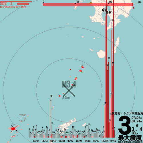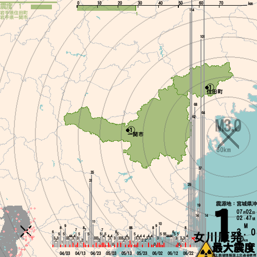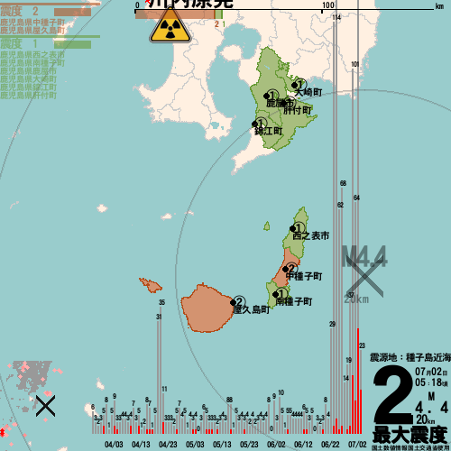 日本の地震の震度情報を、市区町村単位で、地図に描きます。地震は、地盤によって意外な揺れ方をしており、一概に近いほど揺れている訳ではありません。震度3以上の地震はプッシュ通知でお知らせします。津波注意報・津波警報が出ている場合、その旨を文字とともに、海を赤色に描画して警告します。過去の地震も閲覧できます。原子力発電所との位置関係を把握可能。