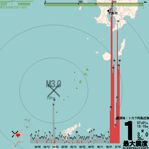日本の地震の震度情報を、市区町村単位で、地図に描きます。地震は、地盤によって意外な揺れ方をしており、一概に近いほど揺れている訳ではありません。震度3以上の地震はプッシュ通知でお知らせします。津波注意報・津波警報が出ている場合、その旨を文字とともに、海を赤色に描画して警告します。過去の地震も閲覧できます。原子力発電所との位置関係を把握可能。