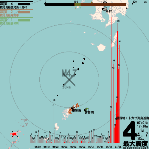 ◆気象庁の地震情報を引用加工して、独自の地図を生成し、表示しています。