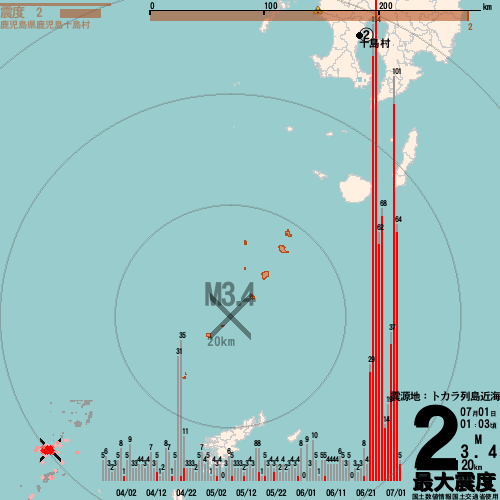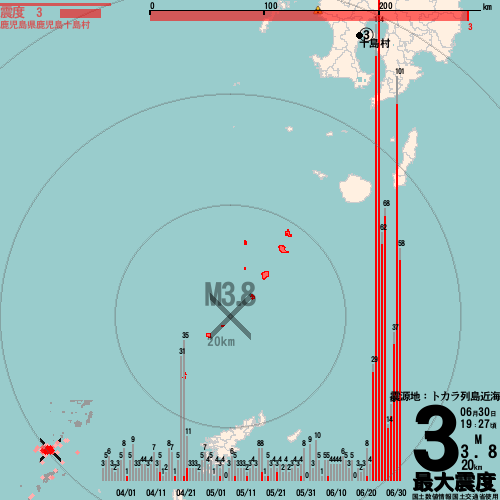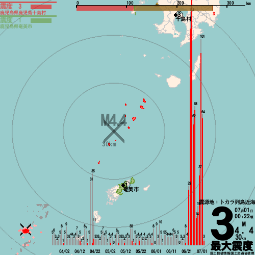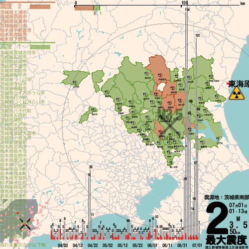 日本の地震の震度情報を、市区町村単位で、地図に描きます。地震は、地盤によって意外な揺れ方をしており、一概に近いほど揺れている訳ではありません。震度3以上の地震はプッシュ通知でお知らせします。津波注意報・津波警報が出ている場合、その旨を文字とともに、海を赤色に描画して警告します。過去の地震も閲覧できます。原子力発電所との位置関係を把握可能。
