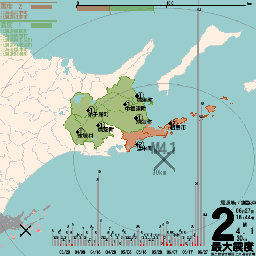 ◆気象庁の地震情報を引用加工して、独自の地図を生成し、表示しています。