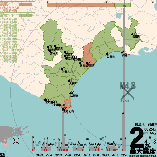 ◆気象庁の地震情報を引用加工して、独自の地図を生成し、表示しています。