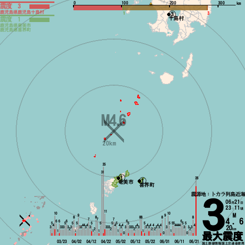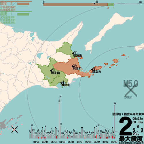 日本の地震の震度情報を、市区町村単位で、地図に描きます。地震は、地盤によって意外な揺れ方をしており、一概に近いほど揺れている訳ではありません。震度3以上の地震はプッシュ通知でお知らせします。津波注意報・津波警報が出ている場合、その旨を文字とともに、海を赤色に描画して警告します。過去の地震も閲覧できます。原子力発電所との位置関係を把握可能。
