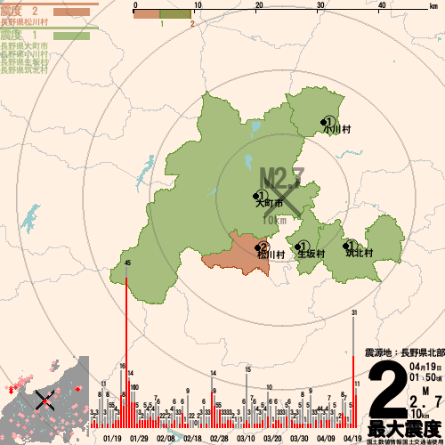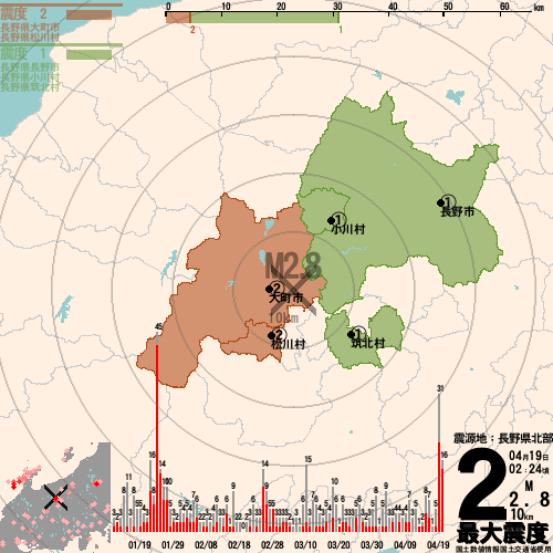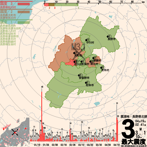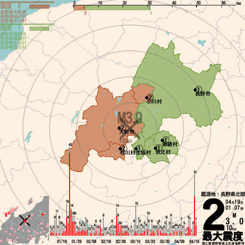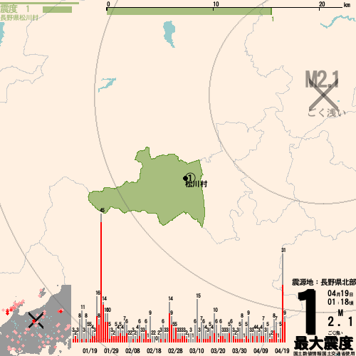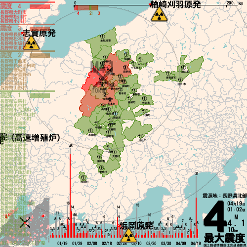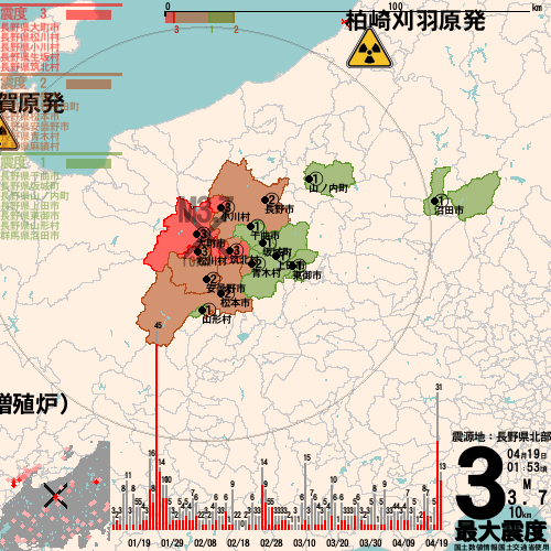 日本の地震の震度情報を、市区町村単位で、地図に描きます。地震は、地盤によって意外な揺れ方をしており、一概に近いほど揺れている訳ではありません。震度3以上の地震はプッシュ通知でお知らせします。津波注意報・津波警報が出ている場合、その旨を文字とともに、海を赤色に描画して警告します。過去の地震も閲覧できます。原子力発電所との位置関係を把握可能。