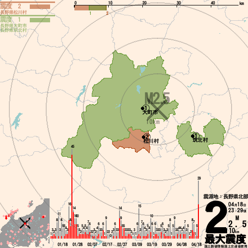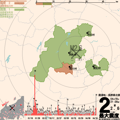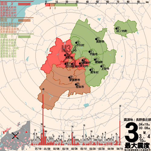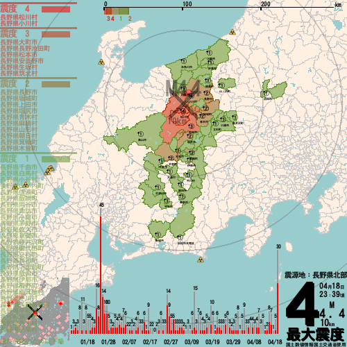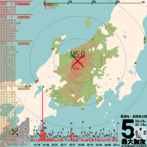 日本の地震の震度情報を、市区町村単位で、地図に描きます。地震は、地盤によって意外な揺れ方をしており、一概に近いほど揺れている訳ではありません。震度3以上の地震はプッシュ通知でお知らせします。津波注意報・津波警報が出ている場合、その旨を文字とともに、海を赤色に描画して警告します。過去の地震も閲覧できます。原子力発電所との位置関係を把握可能。