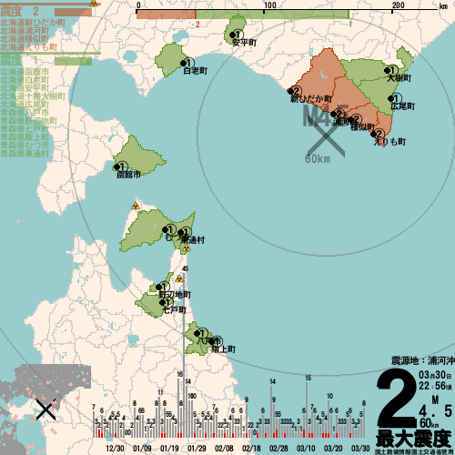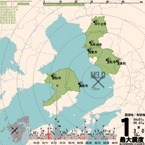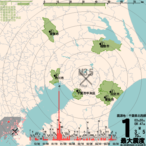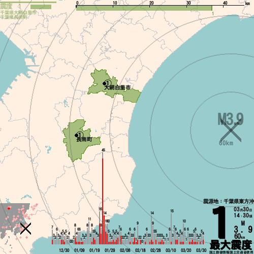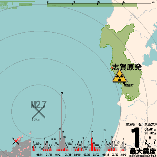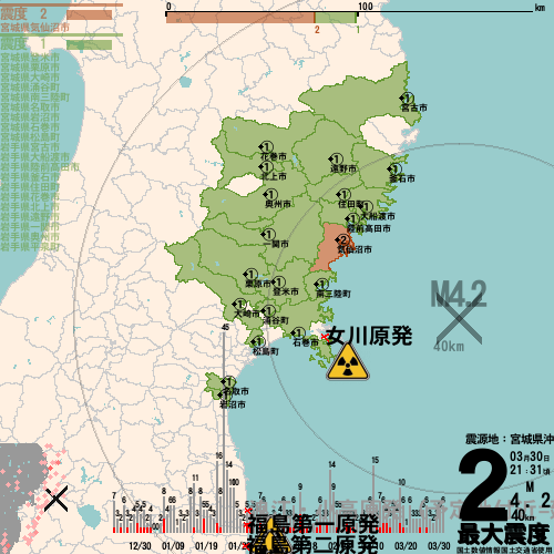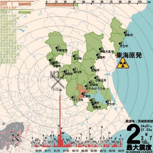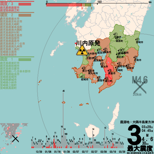 日本の地震の震度情報を、市区町村単位で、地図に描きます。地震は、地盤によって意外な揺れ方をしており、一概に近いほど揺れている訳ではありません。震度3以上の地震はプッシュ通知でお知らせします。津波注意報・津波警報が出ている場合、その旨を文字とともに、海を赤色に描画して警告します。過去の地震も閲覧できます。原子力発電所との位置関係を把握可能。