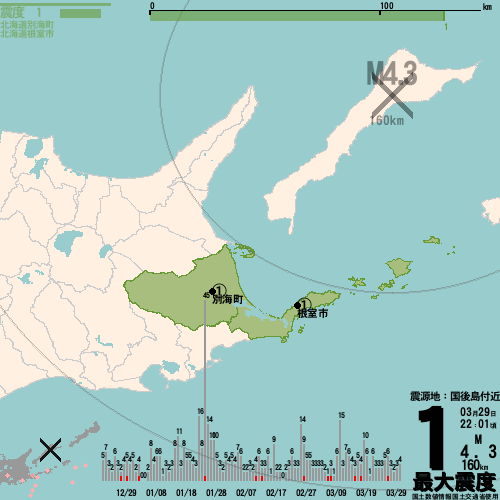 日本で起きた地震を、震度1以上を対象に描画。震度3以上の地震についてはプッシュ通知。津波注意報・津波警報が出ている場合、その旨を文字とともに、海を赤色に描画して警告。過去10回の地震の閲覧。Twitterでのスムーズな情報共有。地図の生成には、気象庁の公開している地震情報と、国土交通省の国土数値情報(行政区域・湖沼・市区町村役場)を利用しています。