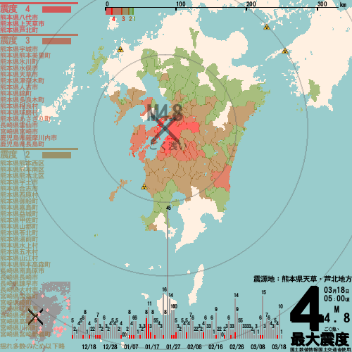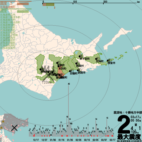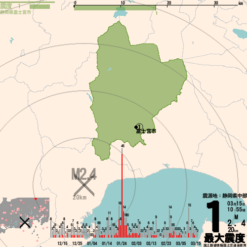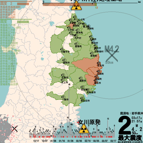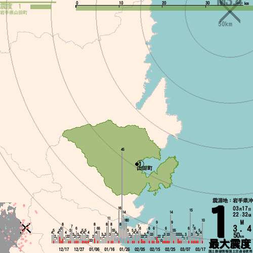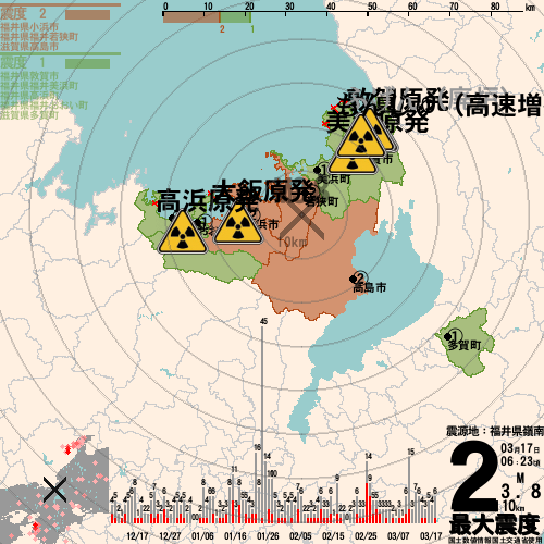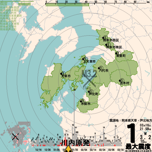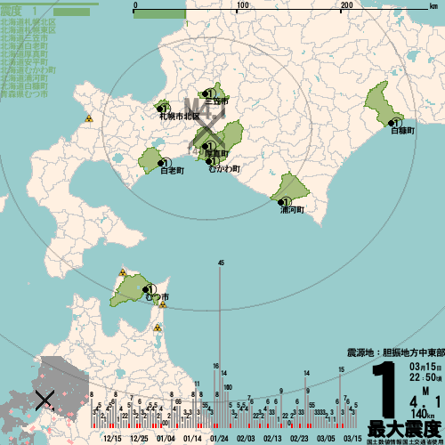 日本の地震の震度情報を、市区町村単位で、地図に描きます。地震は、地盤によって意外な揺れ方をしており、一概に近いほど揺れている訳ではありません。震度3以上の地震はプッシュ通知でお知らせします。津波注意報・津波警報が出ている場合、その旨を文字とともに、海を赤色に描画して警告します。過去の地震も閲覧できます。原子力発電所との位置関係を把握可能。