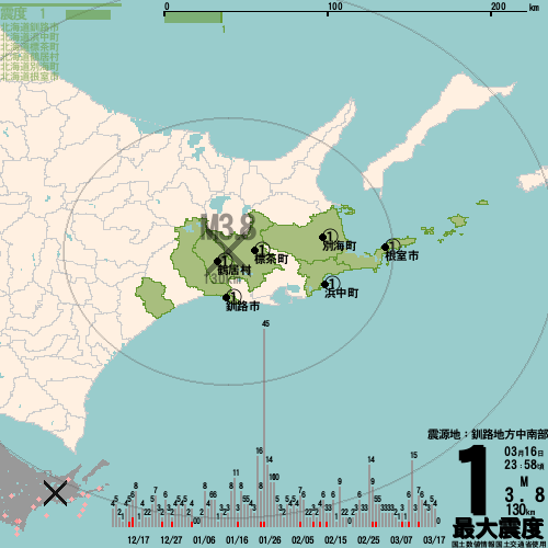 ◆気象庁の地震情報を引用加工して、独自の地図を生成し、表示しています。