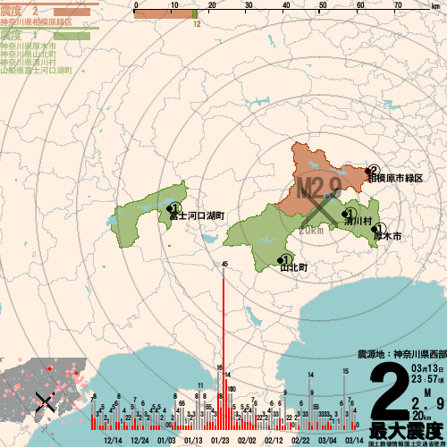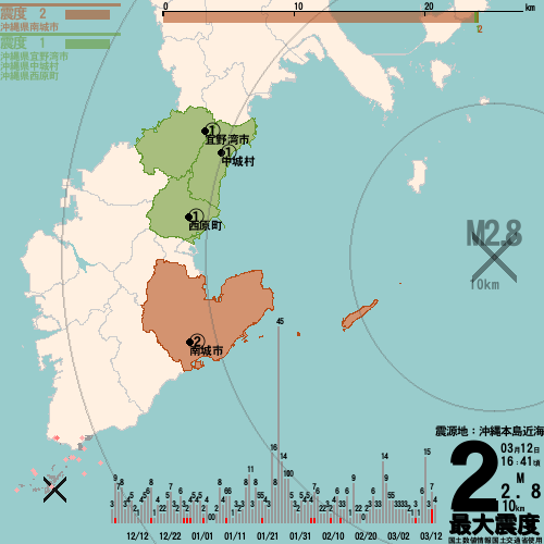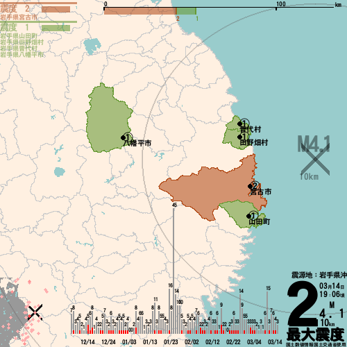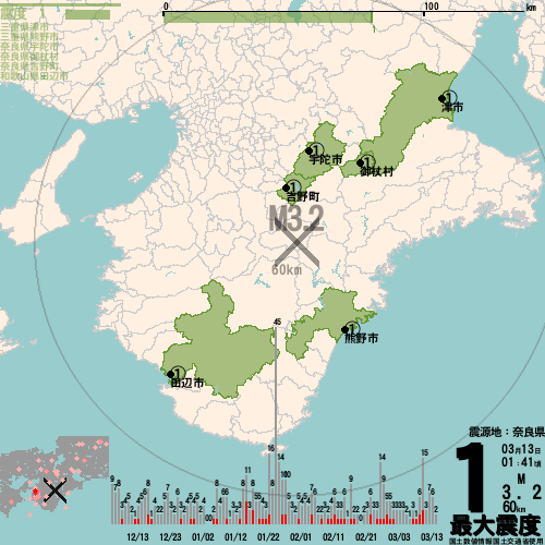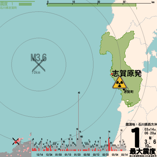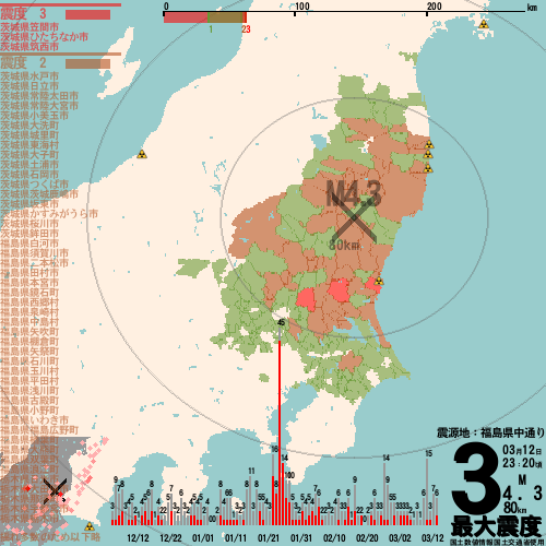 日本の地震の震度情報を、市区町村単位で、地図に描きます。地震は、地盤によって意外な揺れ方をしており、一概に近いほど揺れている訳ではありません。震度3以上の地震はプッシュ通知でお知らせします。津波注意報・津波警報が出ている場合、その旨を文字とともに、海を赤色に描画して警告します。過去の地震も閲覧できます。原子力発電所との位置関係を把握可能。
