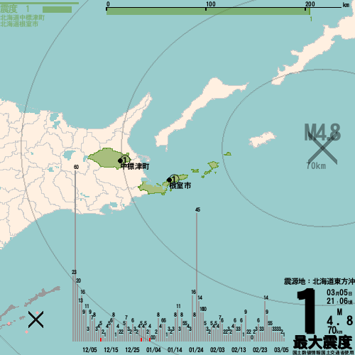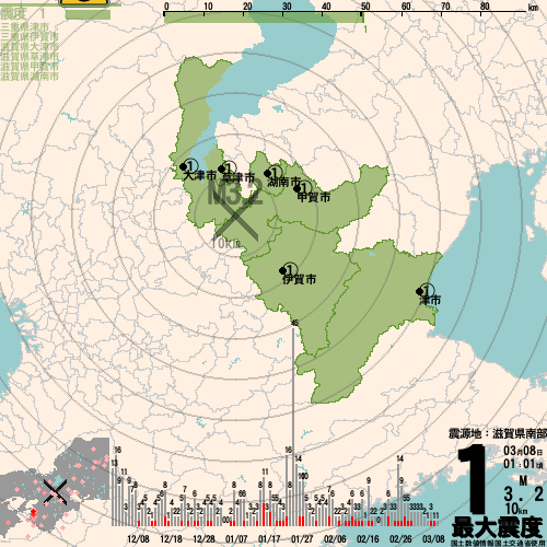 日本で起きた地震を、震度1以上を対象に描画。震度3以上の地震についてはプッシュ通知。津波注意報・津波警報が出ている場合、その旨を文字とともに、海を赤色に描画して警告。過去10回の地震の閲覧。Twitterでのスムーズな情報共有。地図の生成には、気象庁の公開している地震情報と、国土交通省の国土数値情報(行政区域・湖沼・市区町村役場)を利用しています。