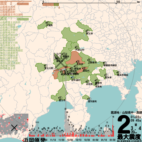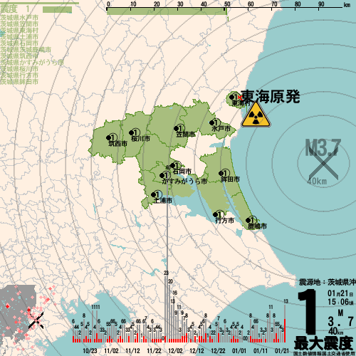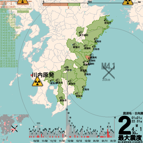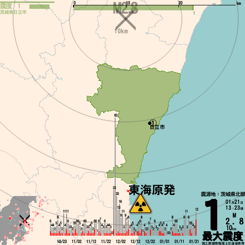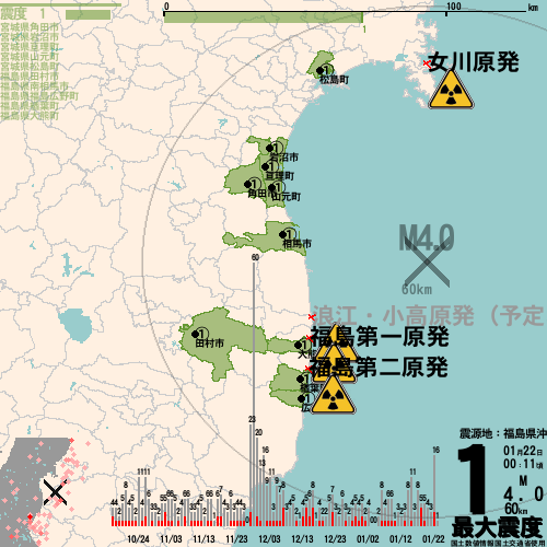 日本の地震の震度情報を、市区町村単位で、地図に描きます。地震は、地盤によって意外な揺れ方をしており、一概に近いほど揺れている訳ではありません。震度3以上の地震はプッシュ通知でお知らせします。津波注意報・津波警報が出ている場合、その旨を文字とともに、海を赤色に描画して警告します。過去の地震も閲覧できます。原子力発電所との位置関係を把握可能。