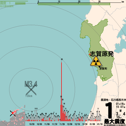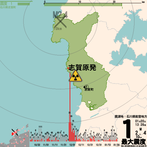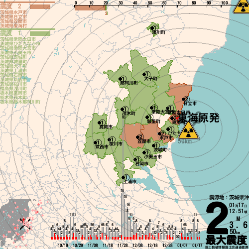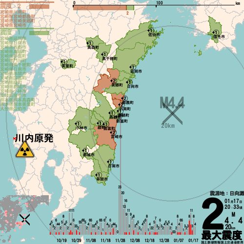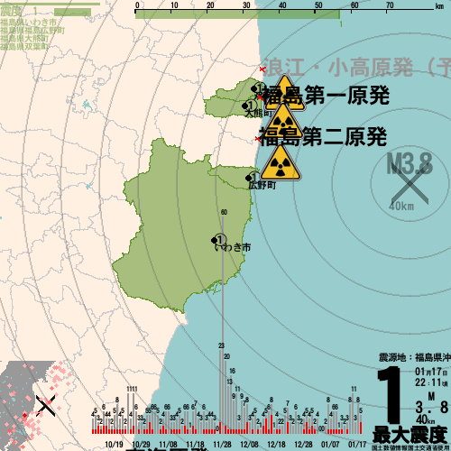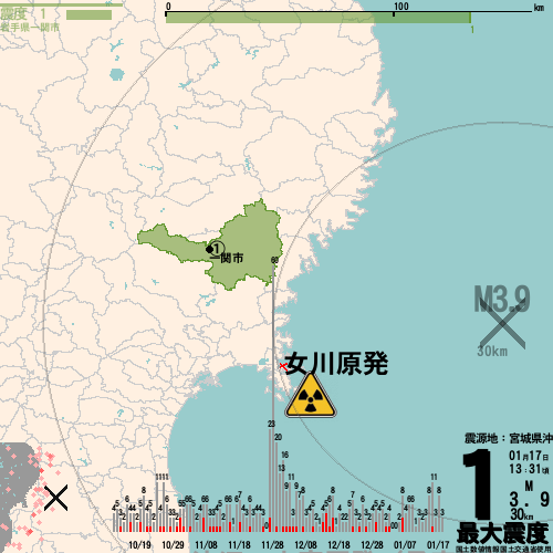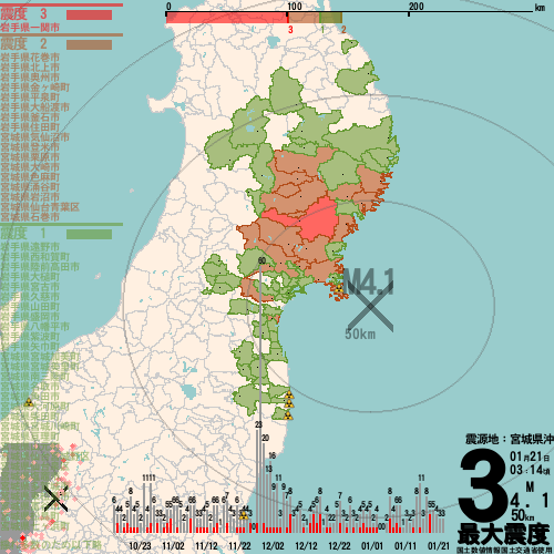 日本の地震の震度情報を、市区町村単位で、地図に描きます。地震は、地盤によって意外な揺れ方をしており、一概に近いほど揺れている訳ではありません。震度3以上の地震はプッシュ通知でお知らせします。津波注意報・津波警報が出ている場合、その旨を文字とともに、海を赤色に描画して警告します。過去の地震も閲覧できます。原子力発電所との位置関係を把握可能。