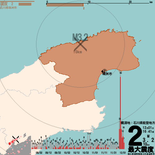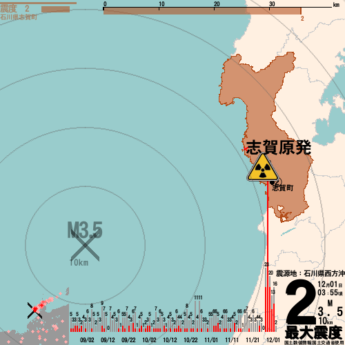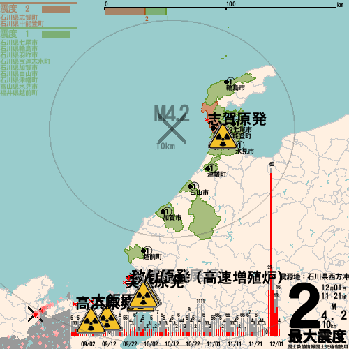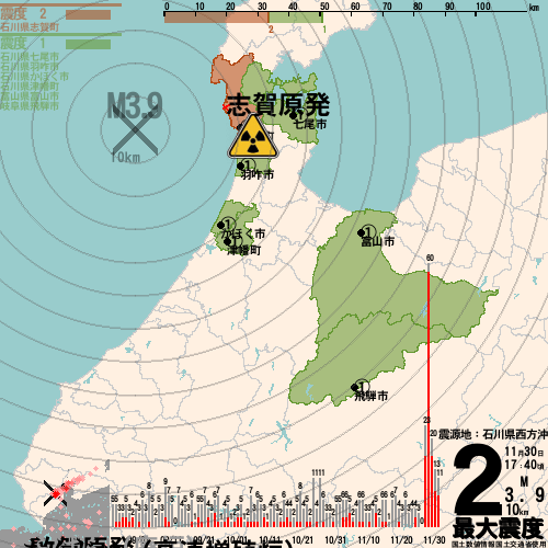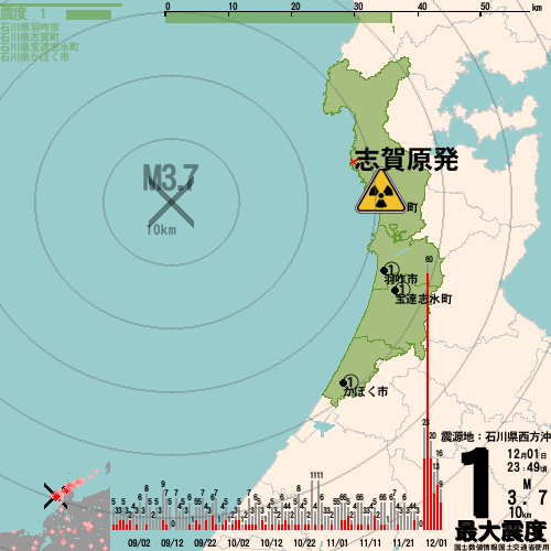 日本の地震の震度情報を、市区町村単位で、地図に描きます。地震は、地盤によって意外な揺れ方をしており、一概に近いほど揺れている訳ではありません。震度3以上の地震はプッシュ通知でお知らせします。津波注意報・津波警報が出ている場合、その旨を文字とともに、海を赤色に描画して警告します。過去の地震も閲覧できます。原子力発電所との位置関係を把握可能。