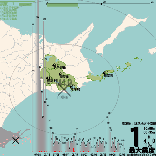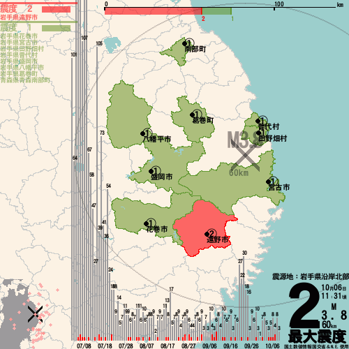 ◆気象庁の地震情報を引用加工して、独自の地図を生成し、表示しています。