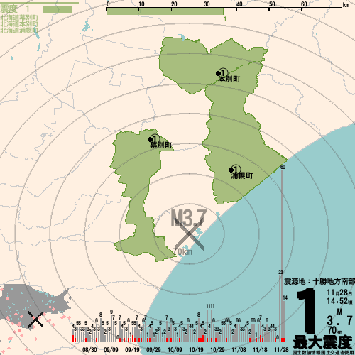 日本で起きた地震を、震度1以上を対象に描画。震度3以上の地震についてはプッシュ通知。津波注意報・津波警報が出ている場合、その旨を文字とともに、海を赤色に描画して警告。過去10回の地震の閲覧。Twitterでのスムーズな情報共有。地図の生成には、気象庁の公開している地震情報と、国土交通省の国土数値情報(行政区域・湖沼・市区町村役場)を利用しています。