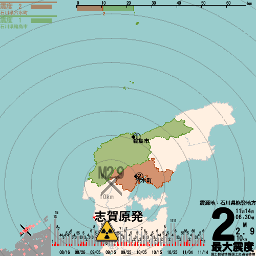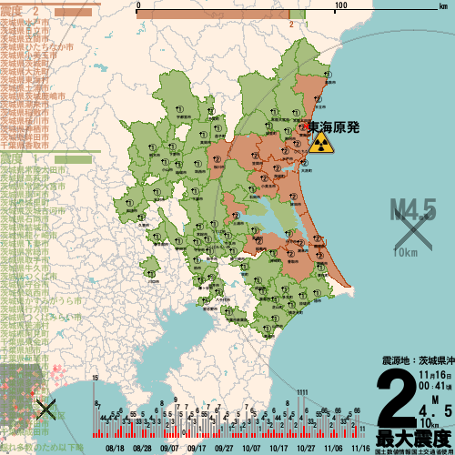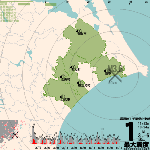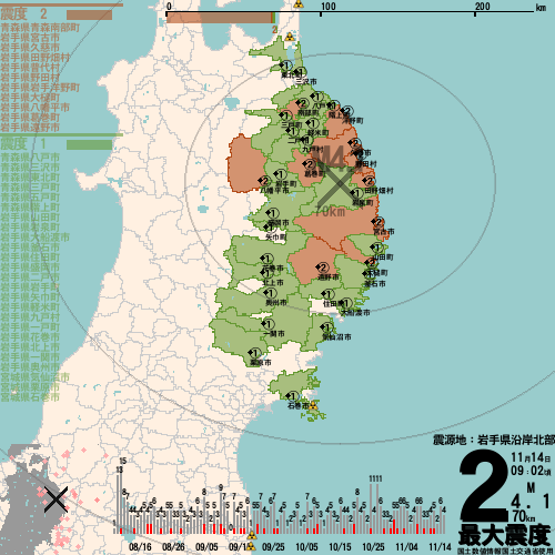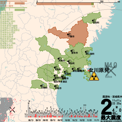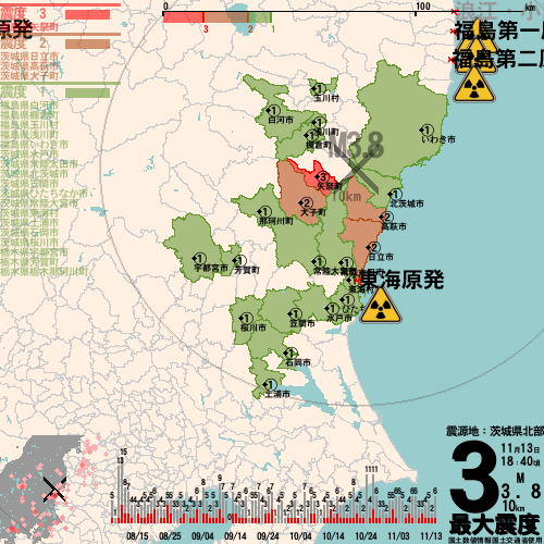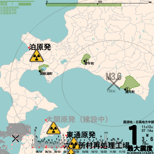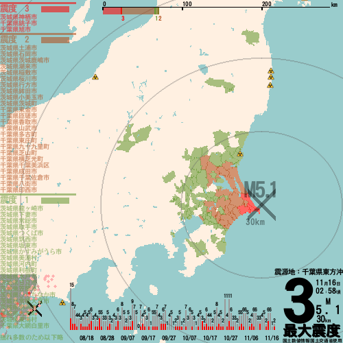 日本の地震の震度情報を、市区町村単位で、地図に描きます。地震は、地盤によって意外な揺れ方をしており、一概に近いほど揺れている訳ではありません。震度3以上の地震はプッシュ通知でお知らせします。津波注意報・津波警報が出ている場合、その旨を文字とともに、海を赤色に描画して警告します。過去の地震も閲覧できます。原子力発電所との位置関係を把握可能。