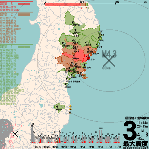 ◆気象庁の地震情報を引用加工して、独自の地図を生成し、表示しています。