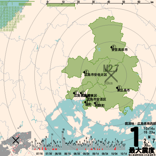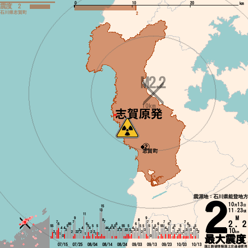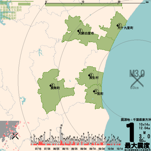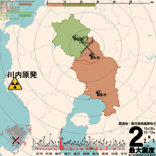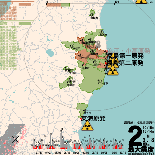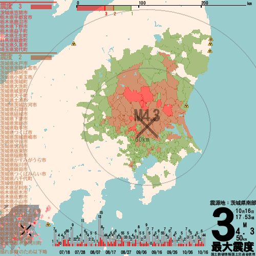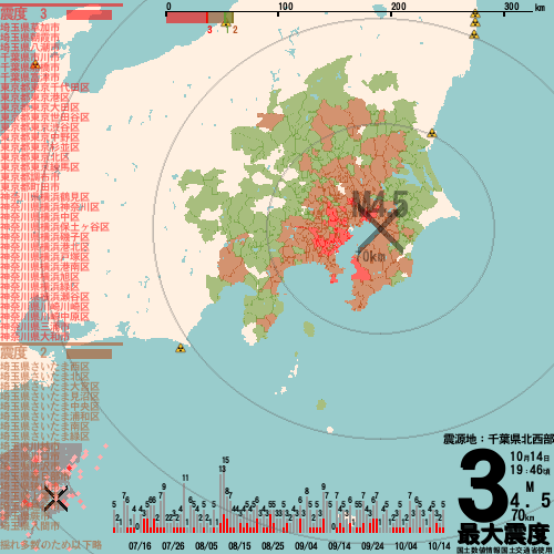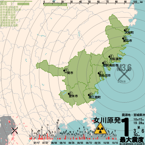 日本の地震の震度情報を、市区町村単位で、地図に描きます。地震は、地盤によって意外な揺れ方をしており、一概に近いほど揺れている訳ではありません。震度3以上の地震はプッシュ通知でお知らせします。津波注意報・津波警報が出ている場合、その旨を文字とともに、海を赤色に描画して警告します。過去の地震も閲覧できます。原子力発電所との位置関係を把握可能。